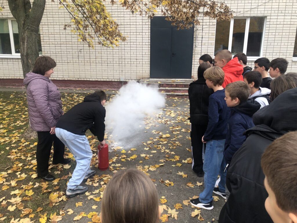 У переддень осінніх канікул класні керівники 9-х класів Тетяна Ткачук та Наталія Косяк разом із медичною сестрою Людмилою Дідич провели практичне заняття з надання першої домедичної допомоги. Майстер-клас для учнів 8-В класу (класний керівник Лариса ПАРАЙ) «Правила користування вогнегасником». Учні дізнались про будову, типи, призначення та правила користування вогнегасниками. Також, кожен охочий мав змогу особисто спробувати вогнегасник в дії. Учителька образотворчого мистецтва Наталія Шостак. провела виставку дитячих малюнків "Обережно! Небезпека!".