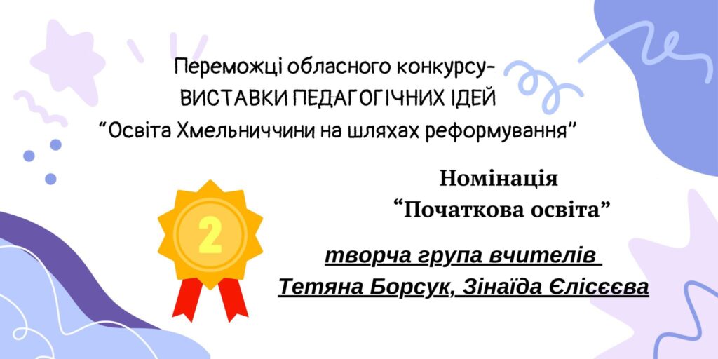 Вітаємо Марію Демчук, Тетяну Сологуб, Тетяну Борсук та Зінаїду Єлісєєву з перемогою в обласному конкурсі-виставці педагогічних ідей «Освіта Хмельниччини на шляхах реформування»! Нехай попереду Вас чекають ще тисячі таких перемог!