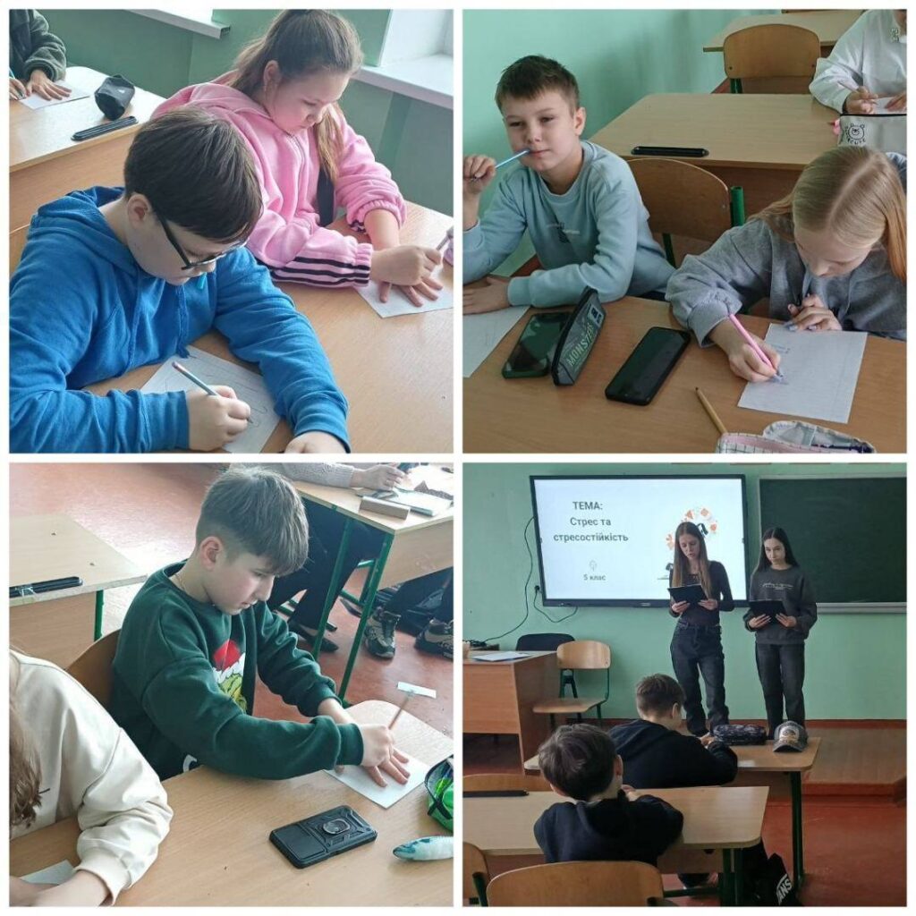 Самолюк Жанна та Гулак Марія, учениці 9-В класу,провели для учнів 5-Г класу два пізнавальні та корисні заняття з ментального здоров’я: «Емоційний інтелект» — говорили про емоції, вчилися їх розпізнавати, називати та розуміти як власні почуття, так і почуття інших.Через вправи та обговорення діти дізналися, чому емоції важливі і як вони впливають на поведінку та наше ментально здоров’я. «Взаємодія у команді і конфлікти» — працювали над умінням співпрацювати, слухати одне одного, знаходити спільні рішення та мирно розв’язувати конфліктні ситуації, що є важливим для нашого психологічного благополуччя. Заняття з ментального здоров’я допомагають формувати навички спілкування, взаємоповаги та підтримки, що є важливими для комфортного й безпечного шкільного середовища.Під час підсумкового заняття учні дізналися, що таке стрес та стресостійкість, у яких ситуаціях можуть виникати стрес та тривожність. Діти вчилися розпізнавати свої емоції, говорили про власні переживання та опановували прості й доступні способи зниження напруження і заспокоєння.Дякуємо практичному психологу Тетяні Сологуб за можливість долучитися до проведення занять у межах цього важливого проєкту з ментального здоров’я.